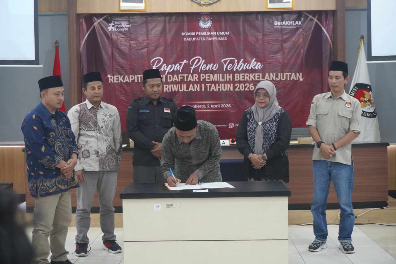 PURWOKERTO – Komisi Pemilihan Umum (KPU) Kabupaten Banyumas resmi menetapkan jumlah pemilih sebanyak 1.433.372 orang dalam Rapat Pleno Terbuka Rekapitulasi Pemutakhiran Data Pemilih Berkelanjutan (PDPB) Triwulan I Tahun 2026, Kamis (2/4/2026).