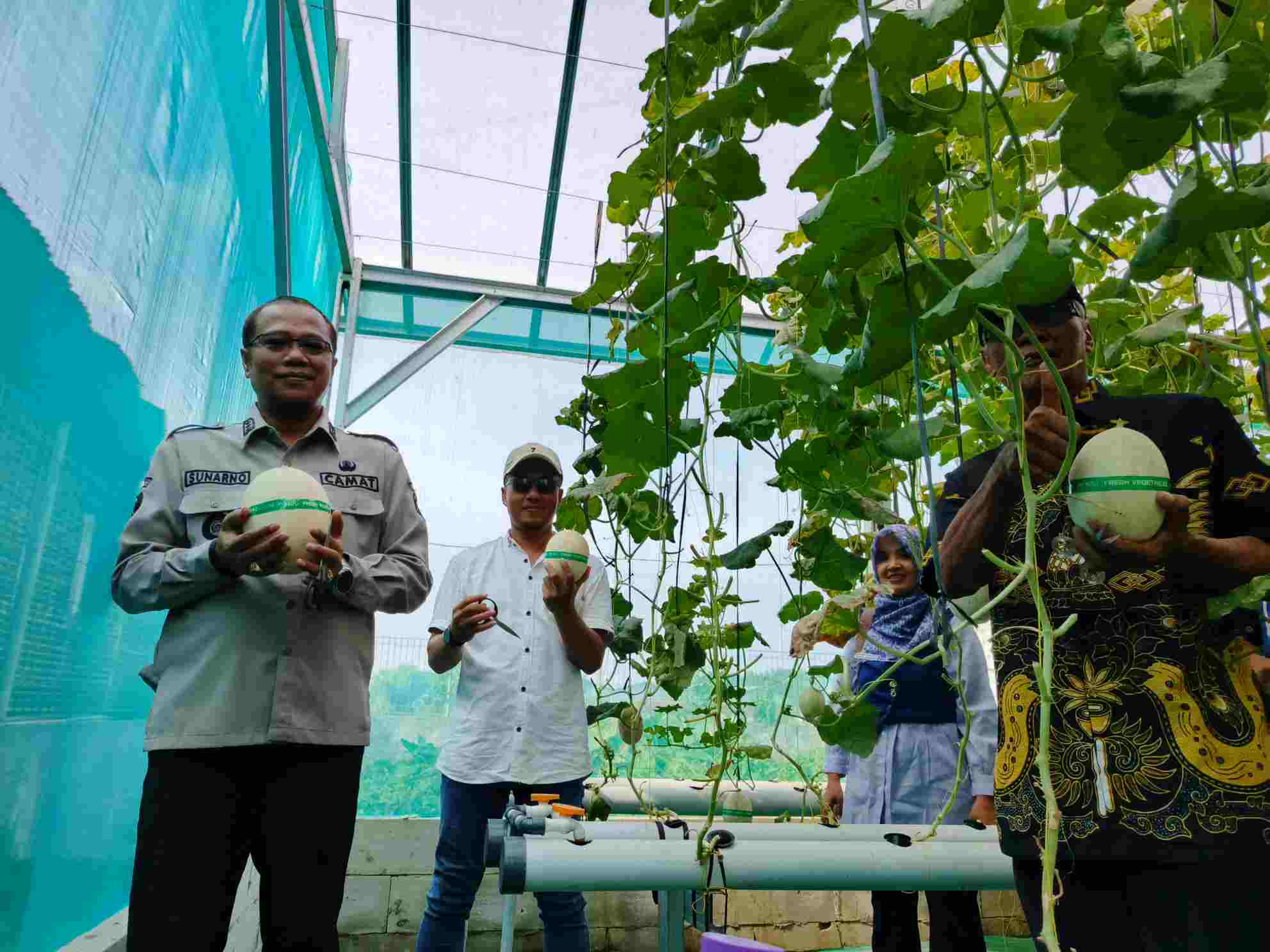 Kegiatan yang dikemas sebagai wisata petik melon ini memungkinkan pengunjung untuk memetik langsung buah dari kebun greenhouse milik desa. Suasana kebun tampak ramai oleh warga yang ingin merasakan sensasi memanen langsung hasil pertanian lokal.