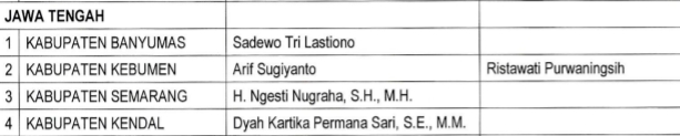Dari 4 nama untuk para calon kepala daerah yang masuk wilayah provinsi Jawa Tengah, baru satu nama yang sudah disertai dengan wakil kepala daerah yakni pasangan Arif Sugianto dengan Ristiawati Purwaningsih (Kabupaten Kebumen).