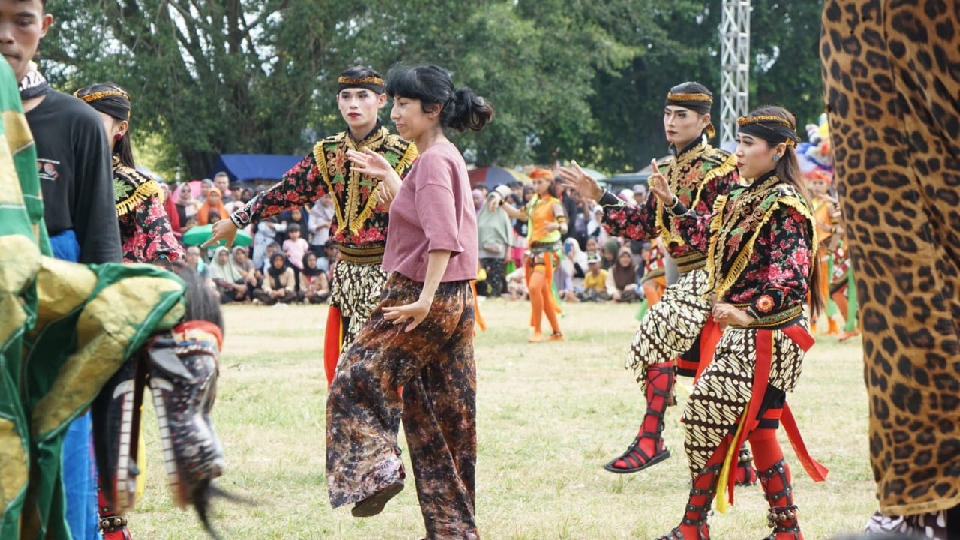 Kostum warna-warni yang dikenakan para penari tampak berkilau diterpa sinar matahari, menghidupkan suasana yang diiringi musik khas Banyumasan. Penampilan dari Sanggar Sekar Melati menjadi salah satu sorotan, menandai keterlibatan lintas generasi dalam acara ini.
